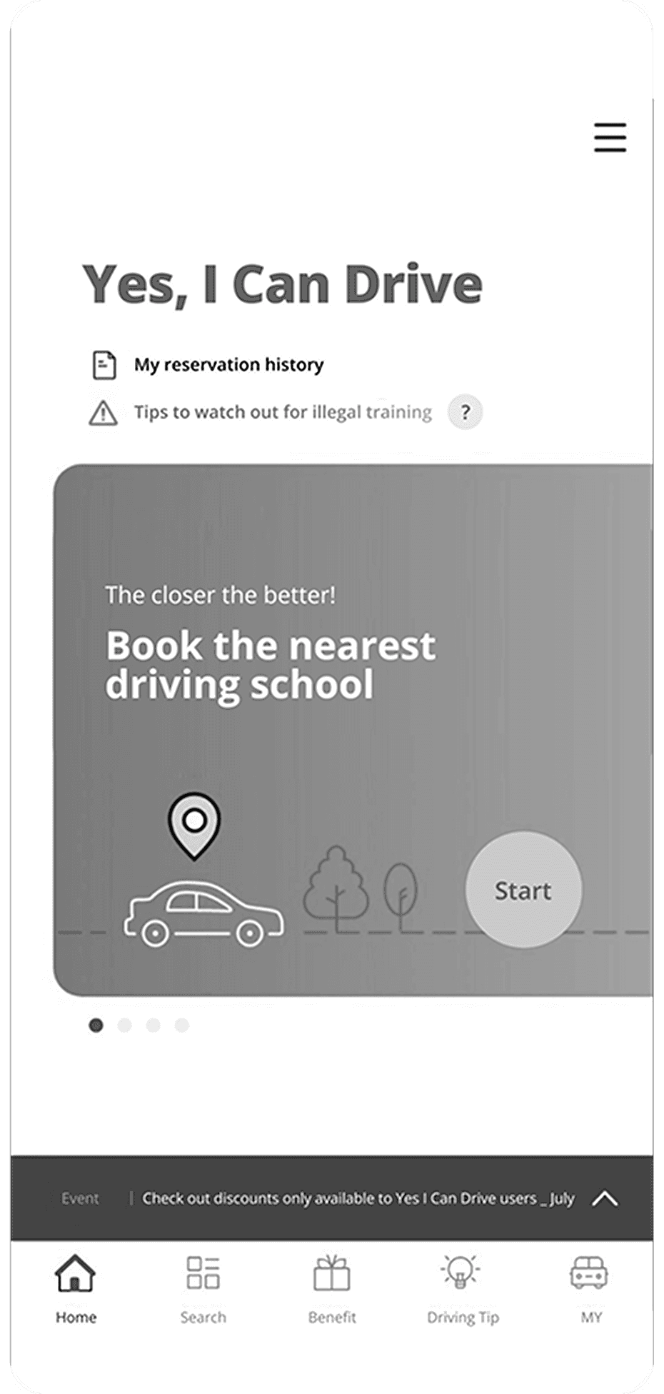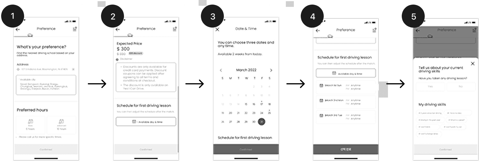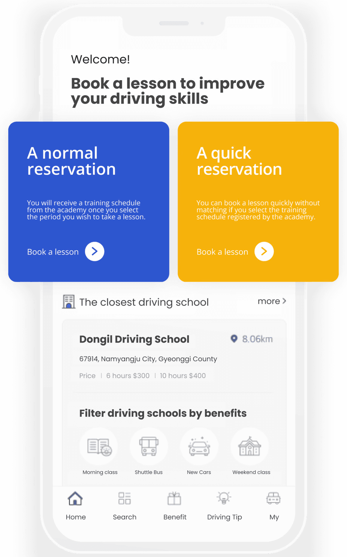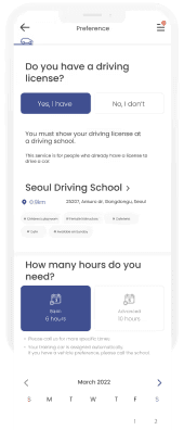A quick reservation option with pre-loaded driving school availabilities, streamlining five steps into two