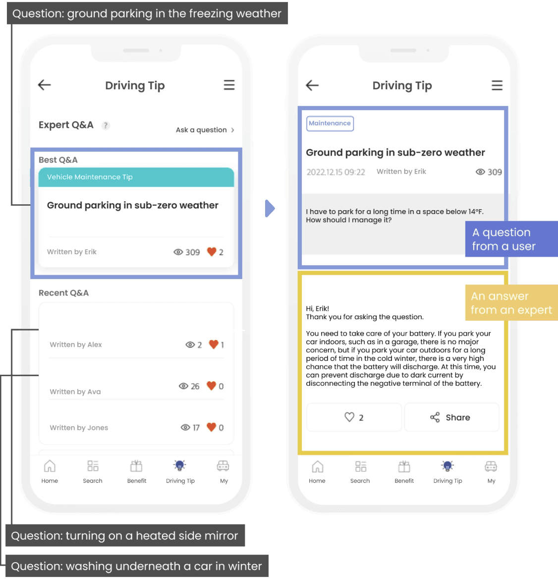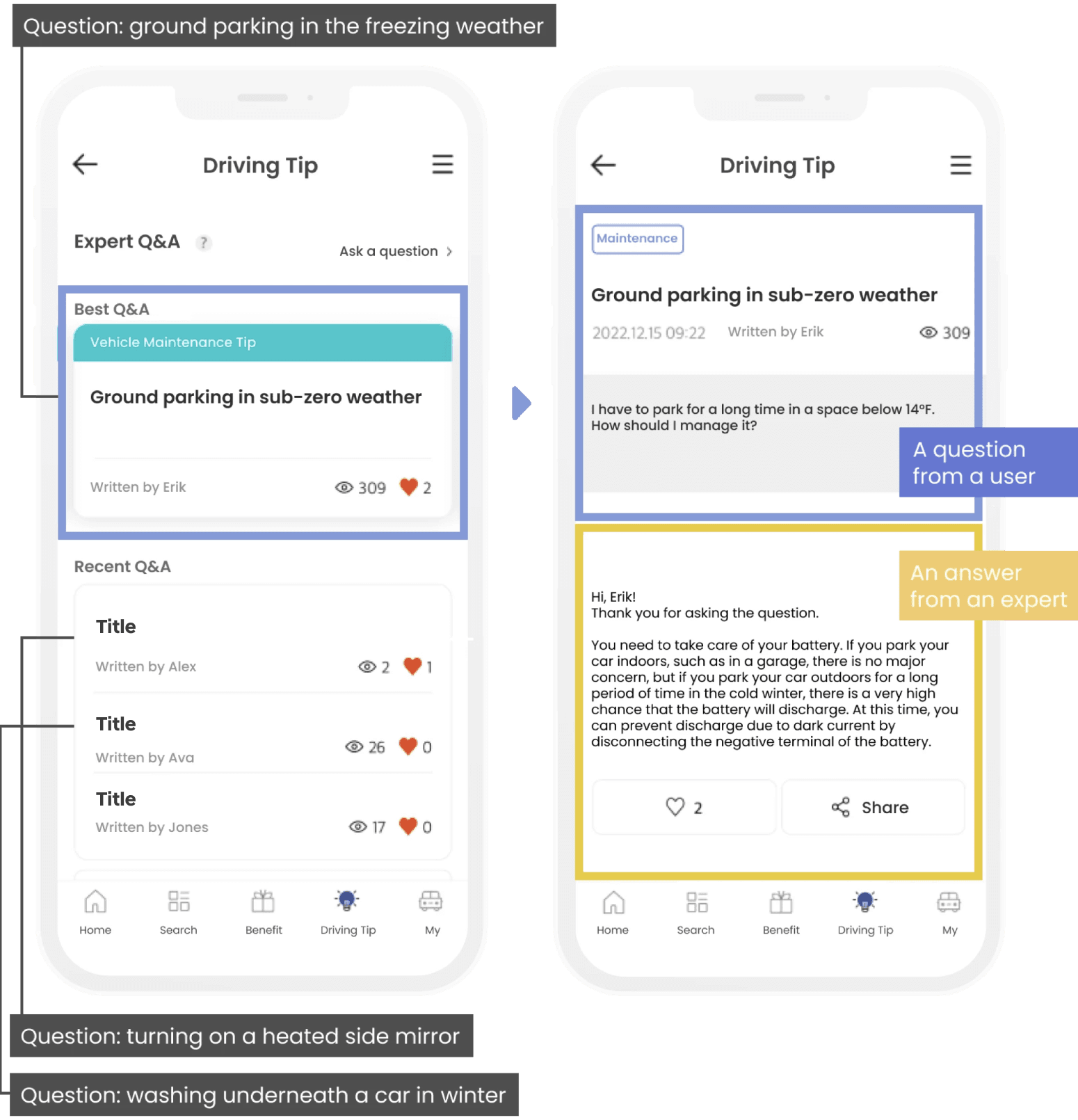 Directly asking experts questions, a unique feature that attracts new users, replacing generic tips and unnecessary car sales promotions