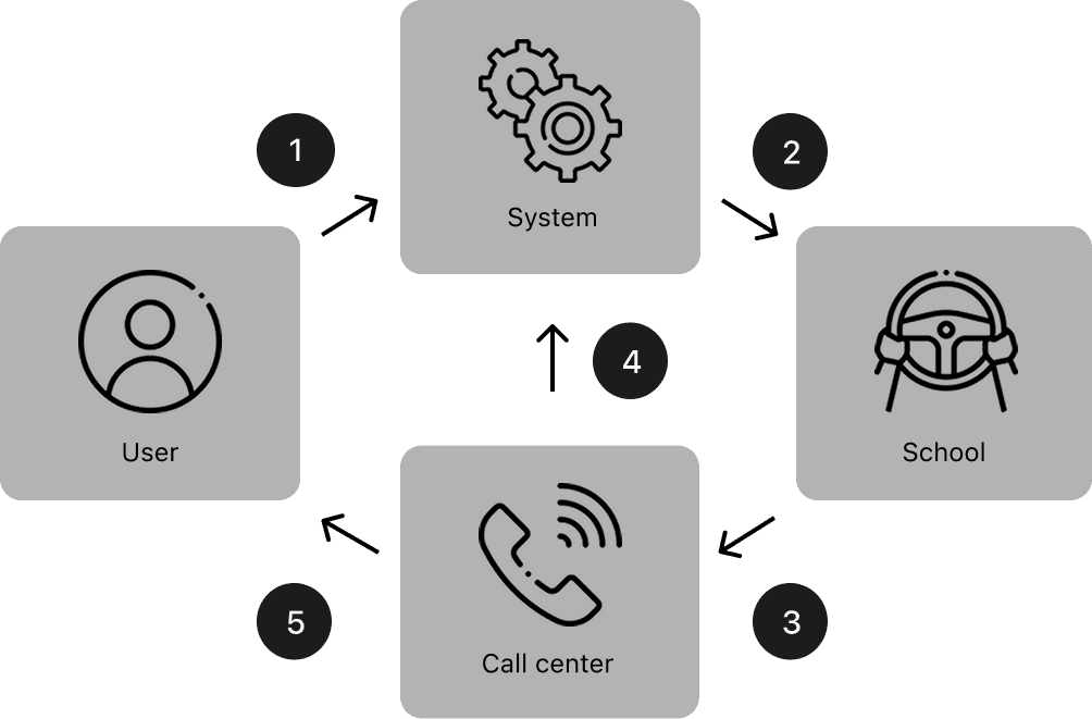 5-step booking process overwhelmed driving school admins and HQ teams, causing many to leave the service.