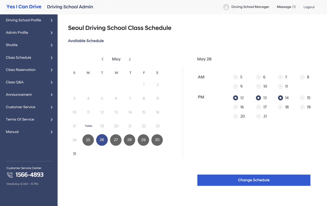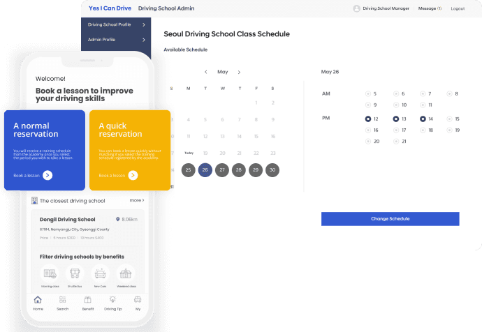 Designed a schedule pre-registration feature for a dashboard used by driving school managers